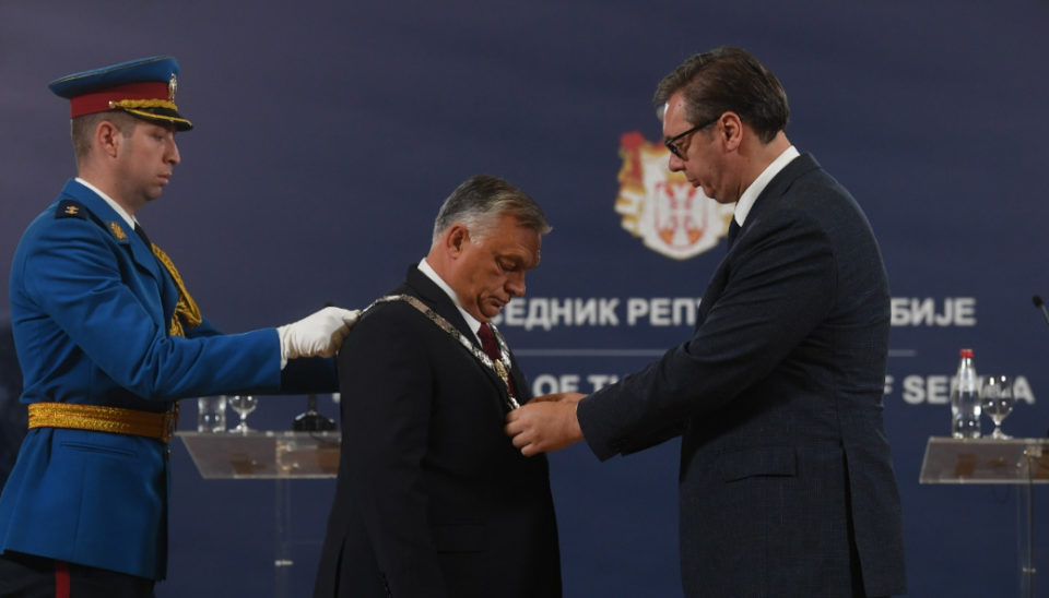 Predsjednik Srbije Aleksandar Vučić je uručio je orden Republike Srbije na velikoj ogrlici premijeru Mađarske Viktoru Orbanu za “izuzetne zasluge u razvijanju i učvršćivanju miroljubive saradnje i prijateljskih odnosa dvije zemlje”.