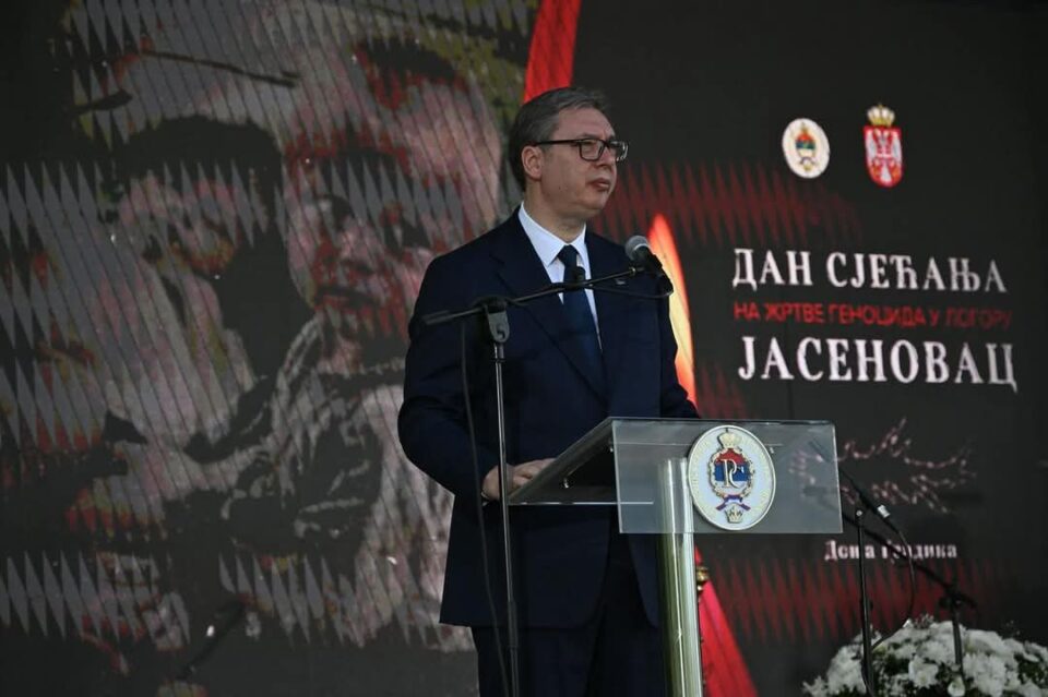 Predsjednik Srbije Aleksandar Vučić prisustvuje obilježavanju Dana sjećanja na žrtve ustaških zločina u logoru Jasenovac, odnosno NDH, a iz Donje Gradine je poslao poruku kako su Srbija i Republika Srpska “napadnute izvana”.