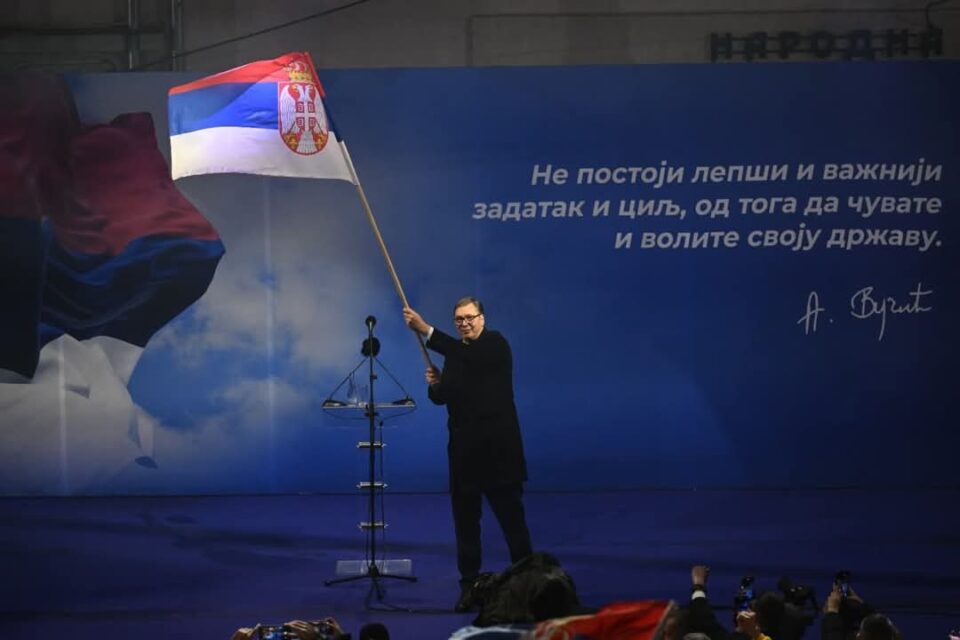 “Vidio sam više od 200 autobusa koji još nisu ušli u Jagodinu. Gotovo sam zaplakao što toliko ljudi želi da brani Srbiju. Beskrajno vam hvala. Zna moja Srbija kako je napadnuta danas, kako je napadnuta spolja i iznutra. Svjestan sam težine trenutka u kojem se nalazimo. Na Kosovu nam pritiskaju narod, pokušavaju protjerati Srbe. To onima spolja ne smeta nimalo. Podržavaju to. To mnogima iznutra nije ni tema. Kao što niko nije opljačkao Srbiju, opljačkali su je oni od 2000. do 2012. godine. Oni danas hoće da se vrate u vlast. Hoće da djecu zloupotrijebe da bi se vratili na vlast”, govorio je Vučić.