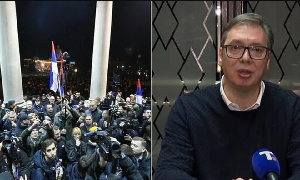 Prethodno je predsjednik Srbije u obraćanju javnosti rekao da nikakva revolucija nije u toku. Poručio je da je država dovoljno snažna da odbrani demokratiju, kao i da će “izgrednici i siledžije biti uhapšeni”.